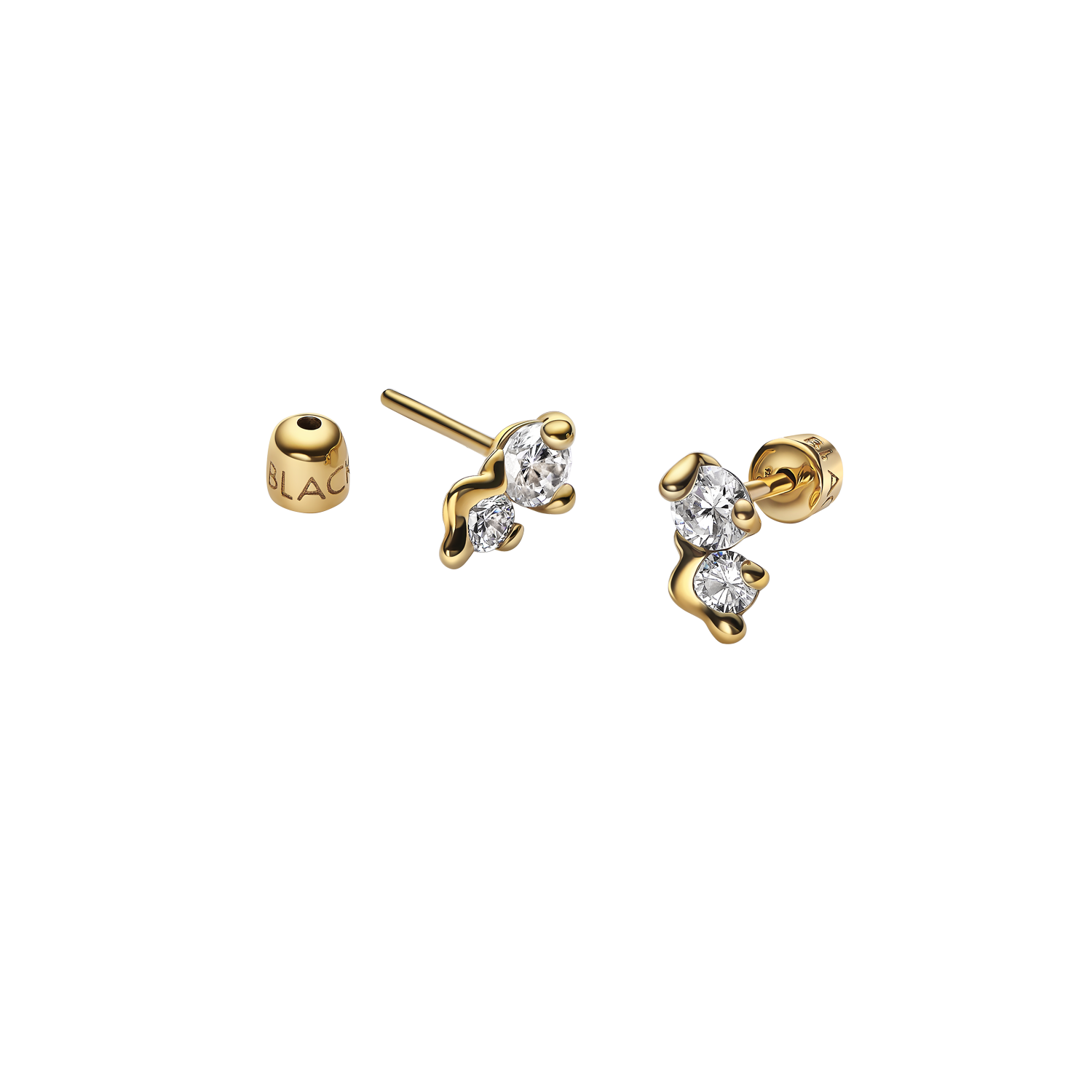Ohrstecker mit 2 weißen Zirkonia in einer verzerrten Krappenfassung Nickelfrei und hypoallergen