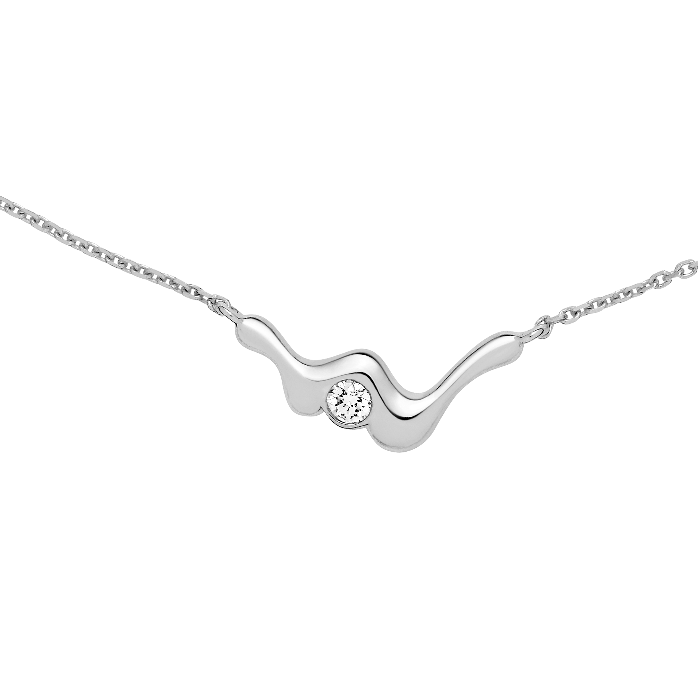 Die Baxter-Halskette hat ein einzigartiges, fließendes Design und ist mit einem einzelnen, perfekt platzierten, im Labor gezüchteten Diamanten verziert. Sie ist ideal, um sie mit der Temple-Halskette zu kombinieren oder einfach allein zu tragen.