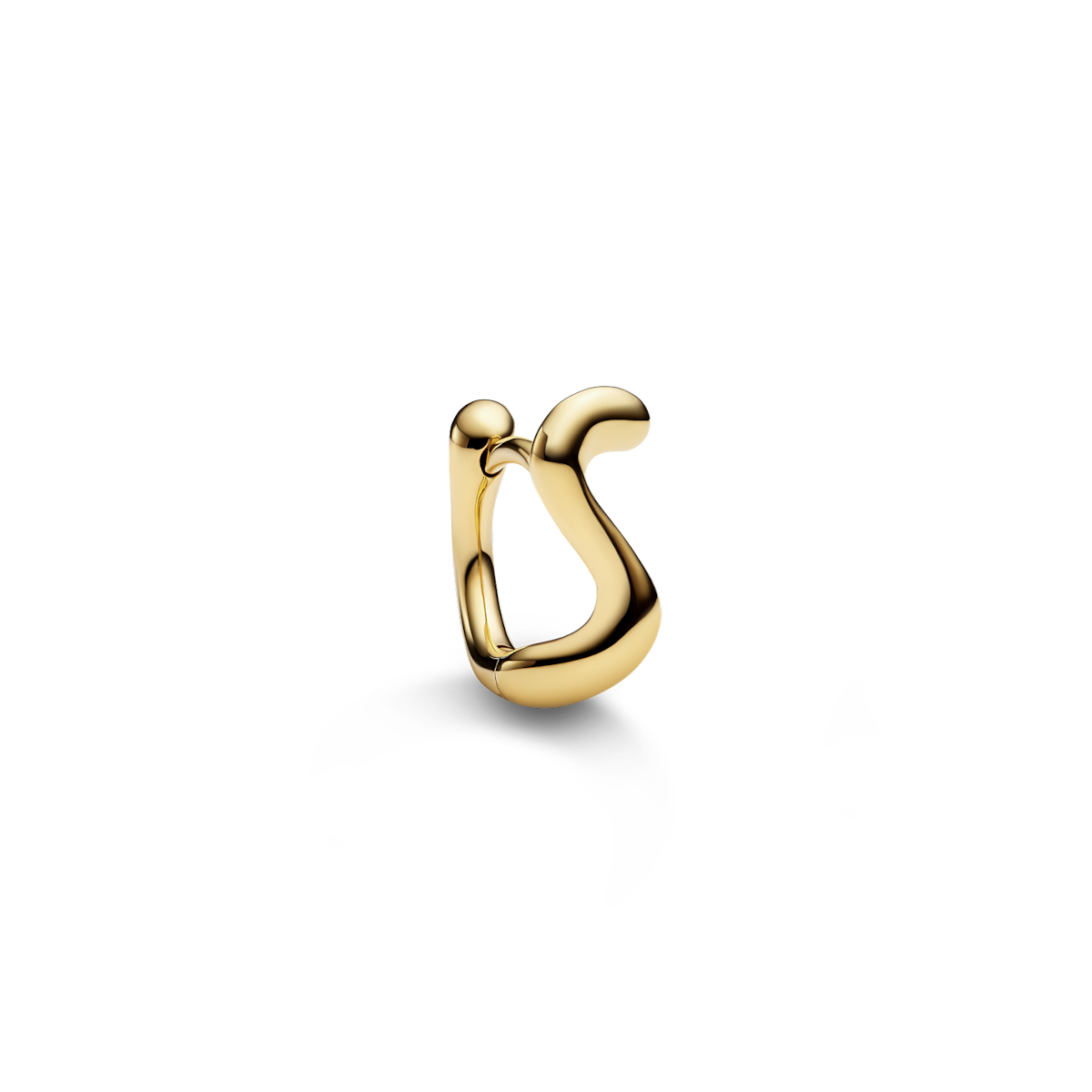 Ein Huggie mit fließender Form, der elegant am Ohrläppchen entlangläuft und einen verspielten Look kreiert