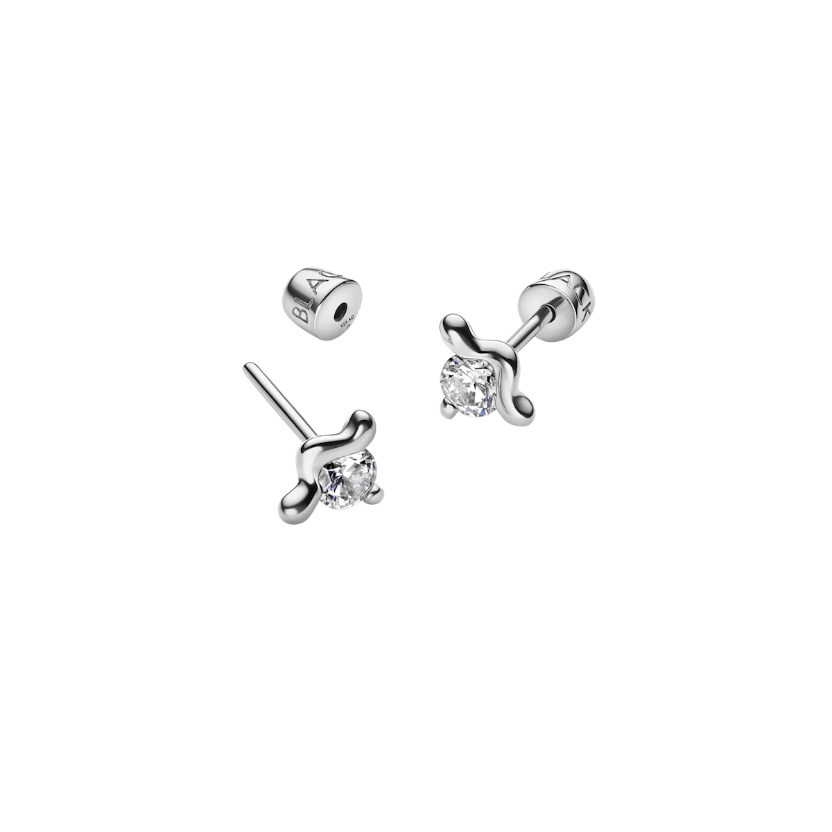 Ørestik med hvid zirconia sten og organisk formede detaljer Hypoallergenisk og nikkelfri