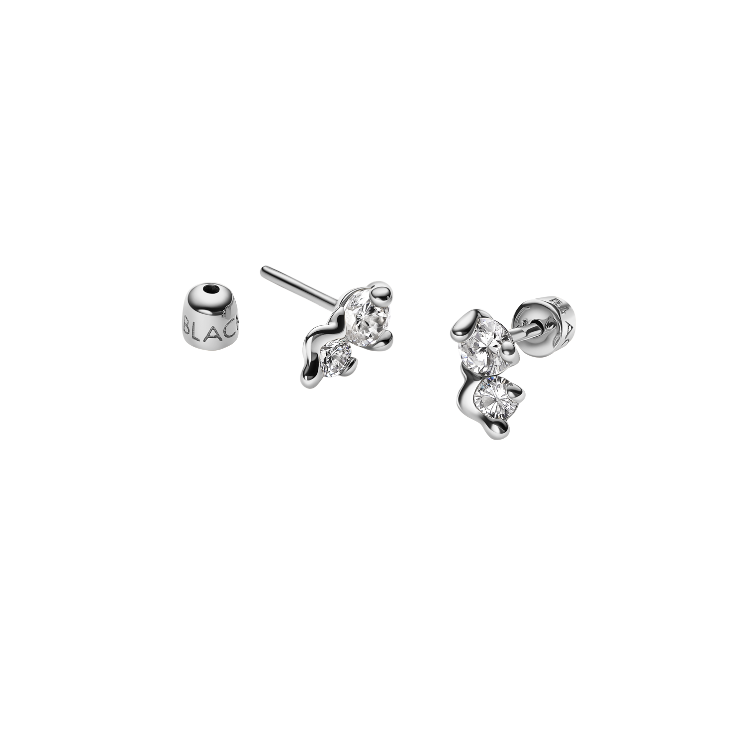 Ørestik med to hvid zirconia sten og organisk formede detaljer