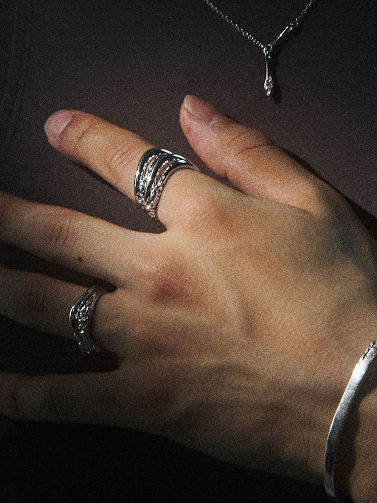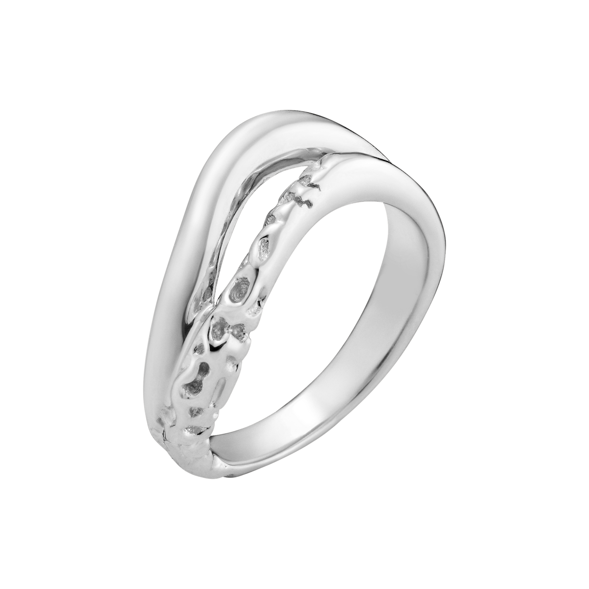 Bess er en buet bølgering lavet af 2 ringe, der er smeltet sammen til den perfekte stack. Dette stykke skal forestille at være midt i opløsning - en glat poleret kurve ved siden af en eroderet ring.