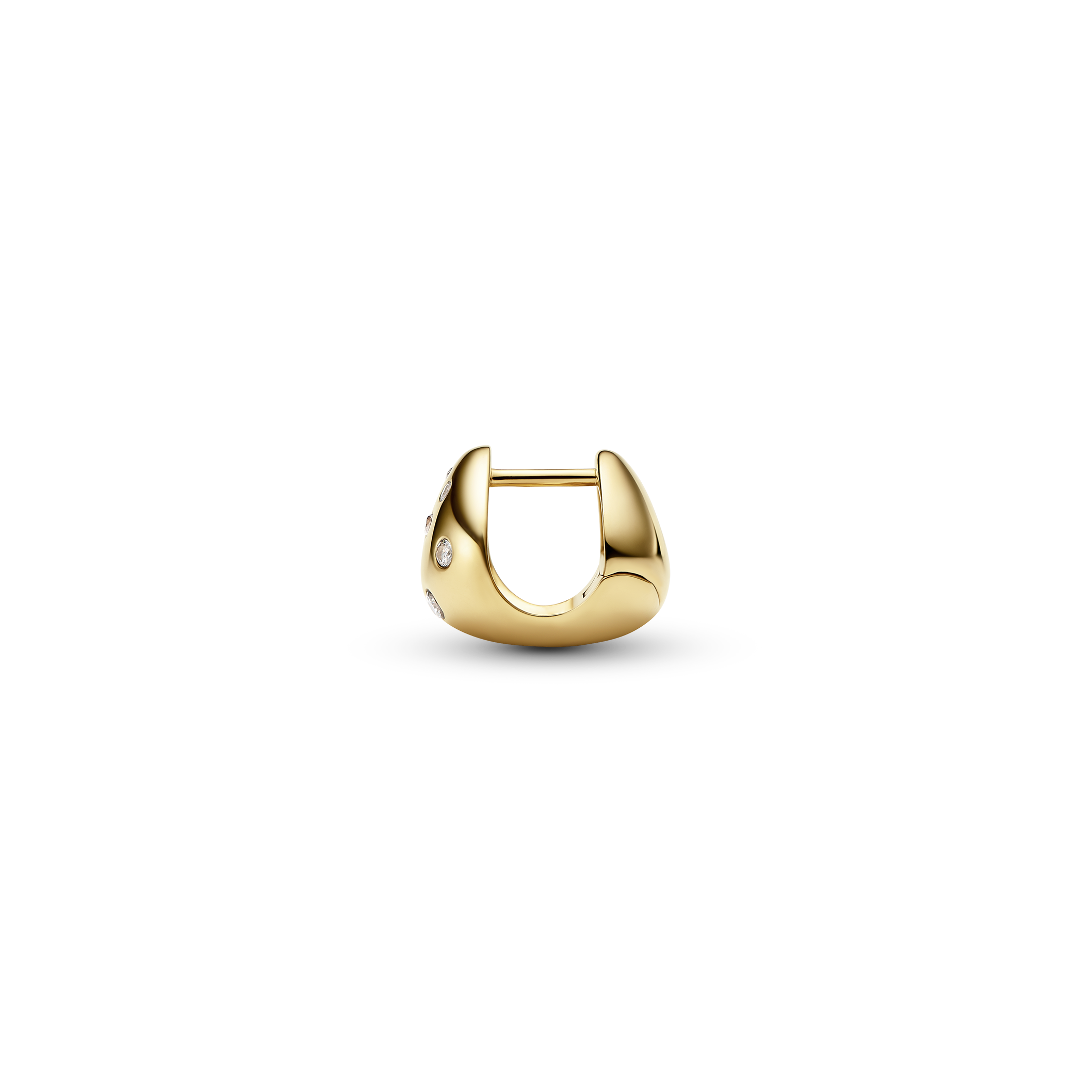 Kuppelformet huggie med 5 mm indvendig diameter og håndsatte hvide zirkonia i varierende størrelser