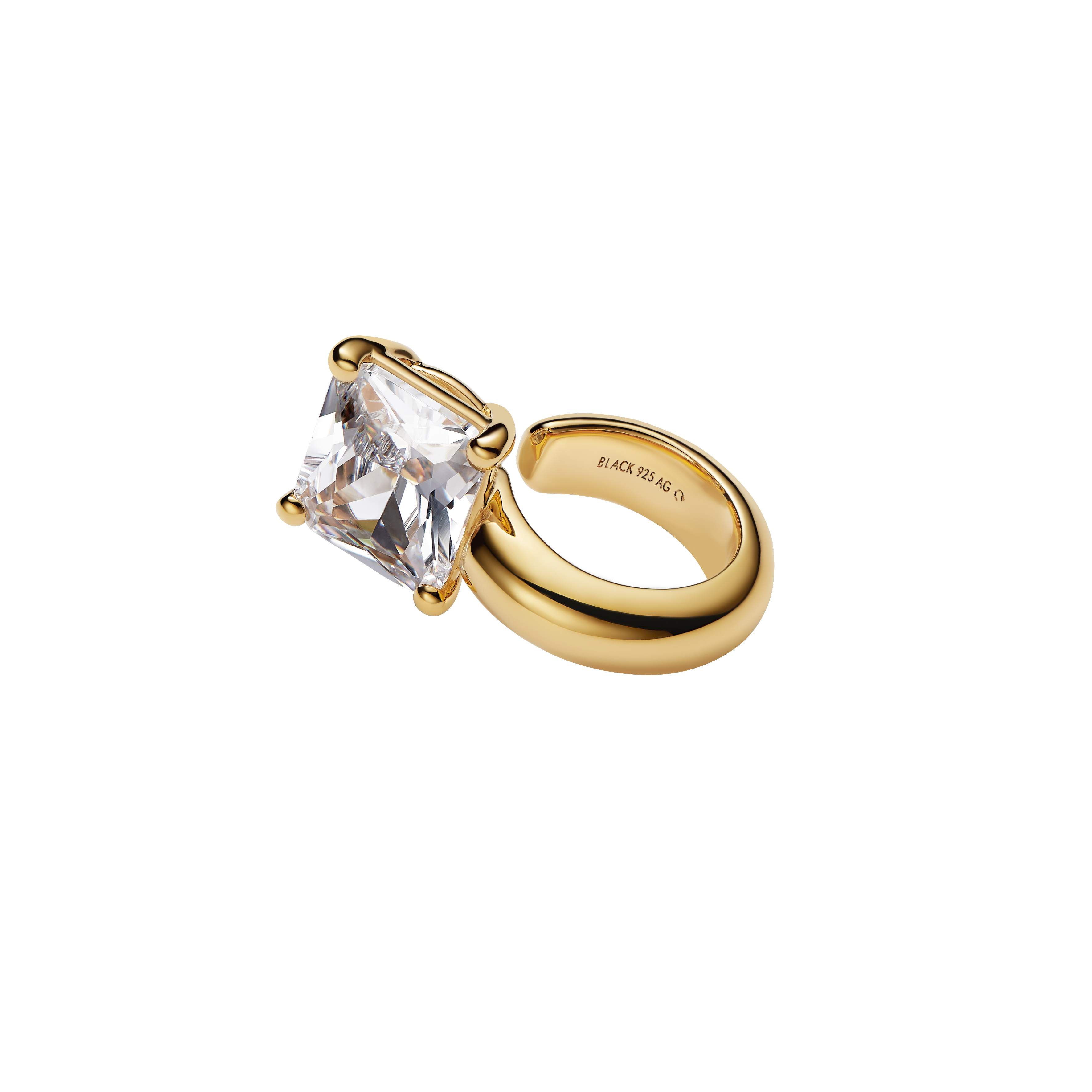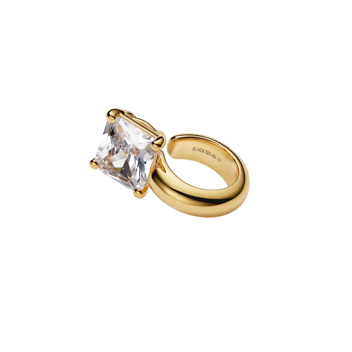Ørecuff med stor ottekantet hvid zirconia sten
