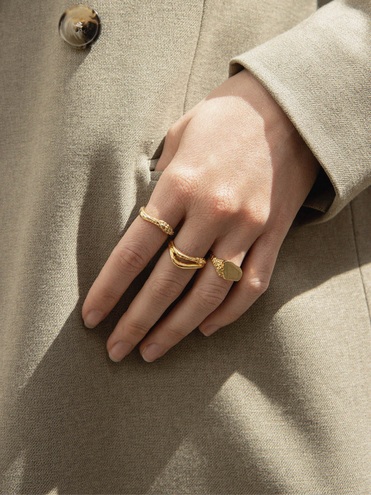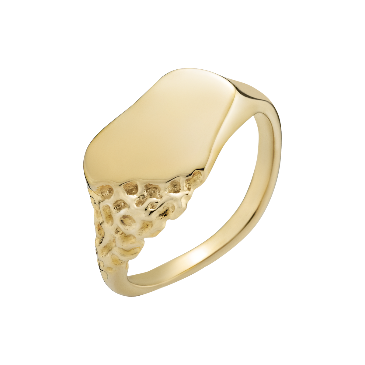 Sawyer er en klassisk, alsidig signetring med et twist. Formen på toppen af dette smykke refererer til formen på en dåsering i kombination med et motiv, der ligner en erosionsproces. Denne ring vil kun se bedre ud jo mere du bruger den.