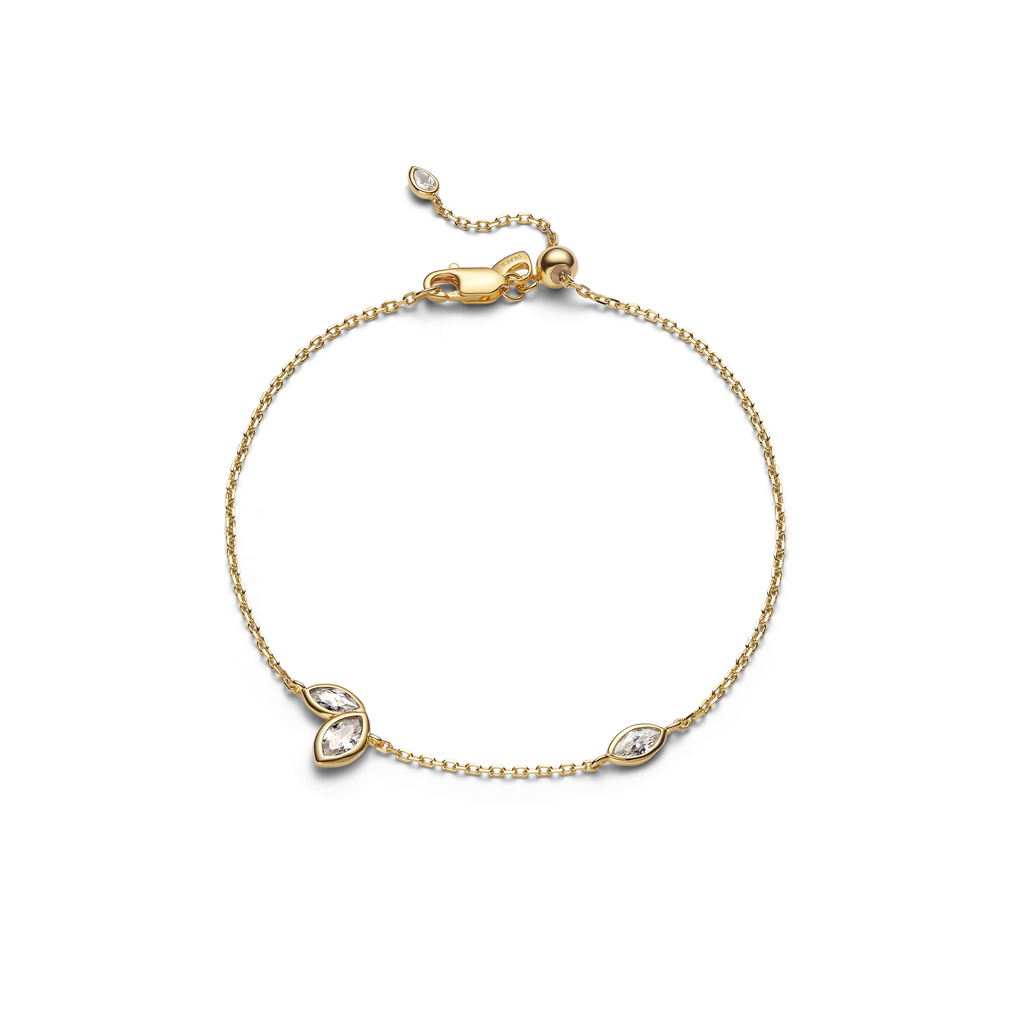 Elegant kædearmbånd med unikke forskudte fatninger og marquise- og pæresleben zirkonia-sten