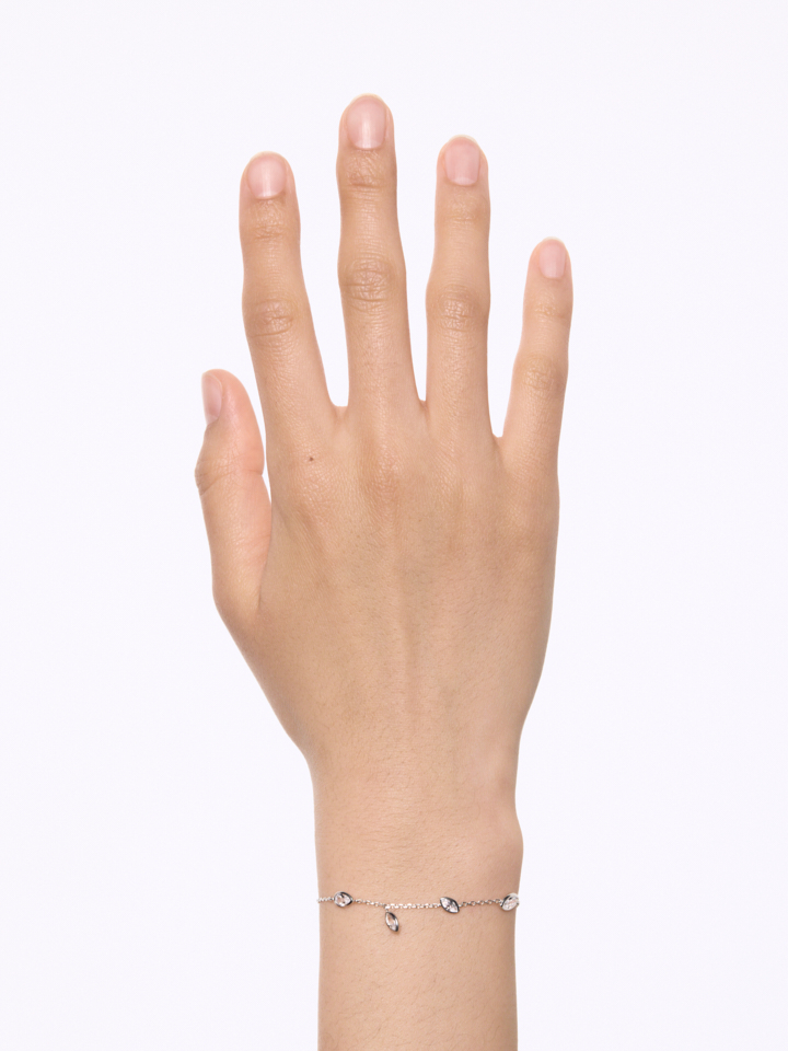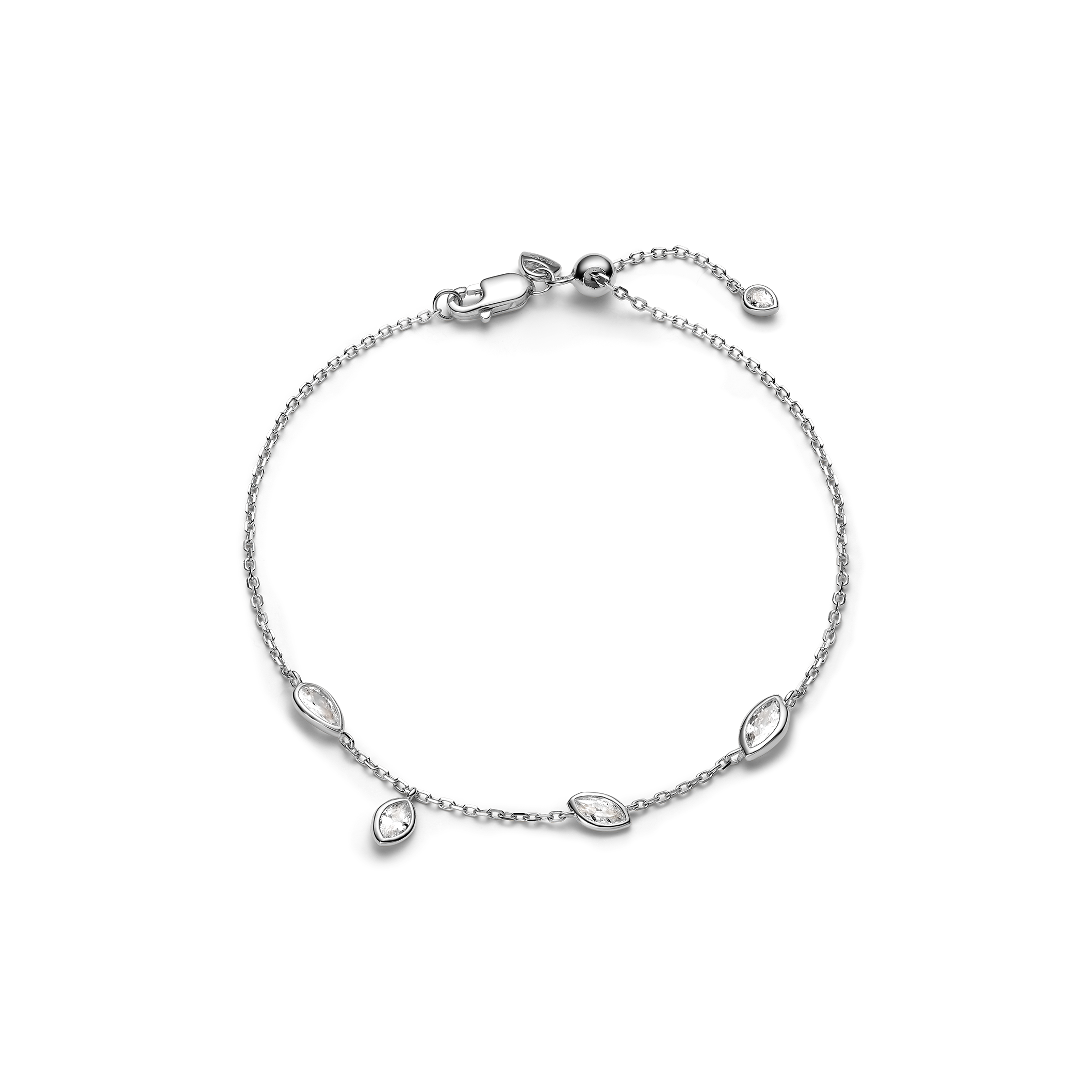 Delikat kæde-armbånd med flydende hvide zirkonia-sten i marquise- og pæreformede slibninger