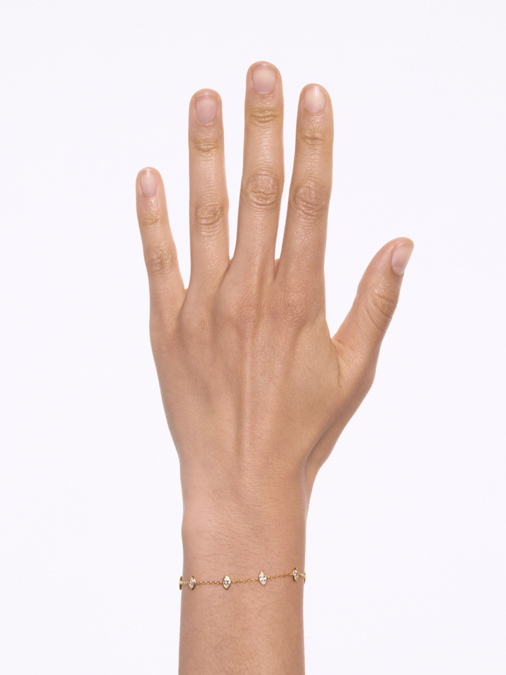 Fjerlet kædearmbånd med flydende indfattede hvide zirkonia sten