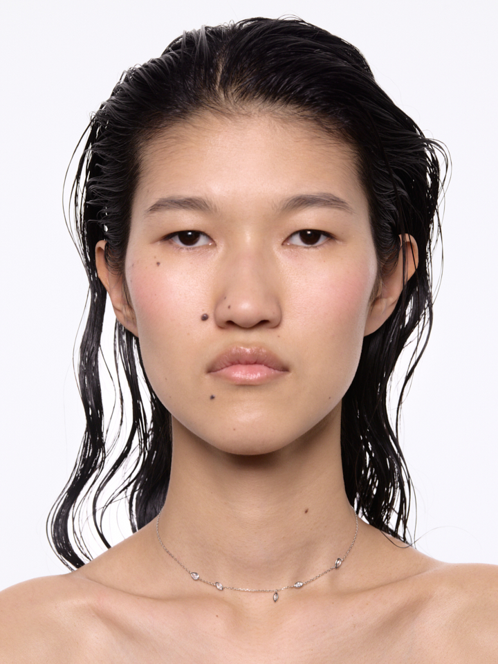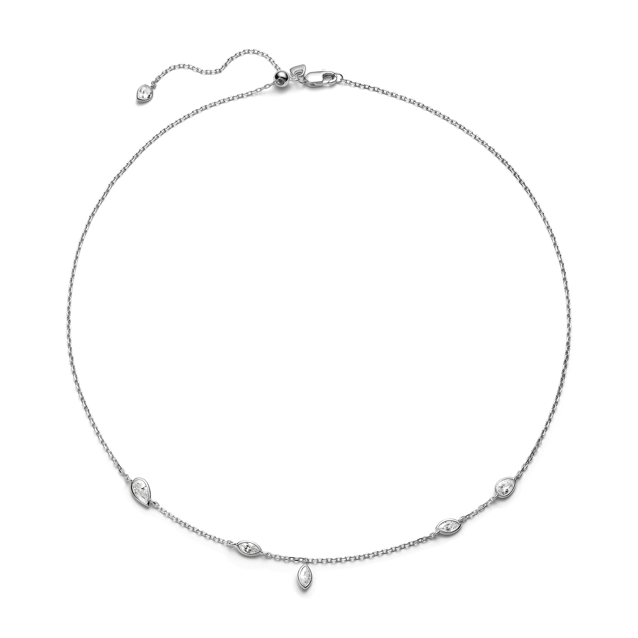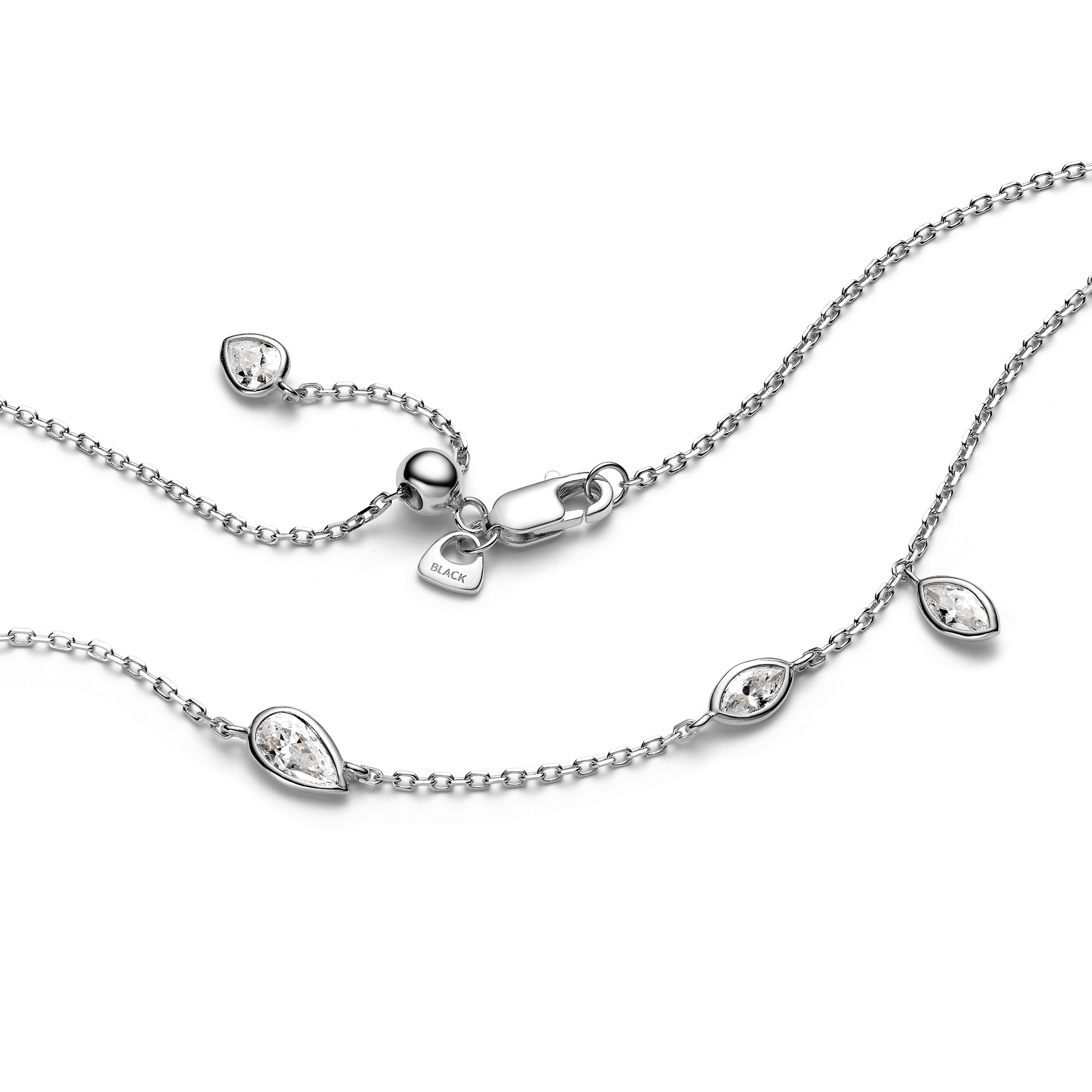 Let halskæde med flydende fatninger og hvide zirkonia-sten i marquise- og pæreform