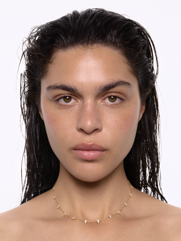 Elegant halskæde med pæreformede zirkonia-sten i unik svævende fatning