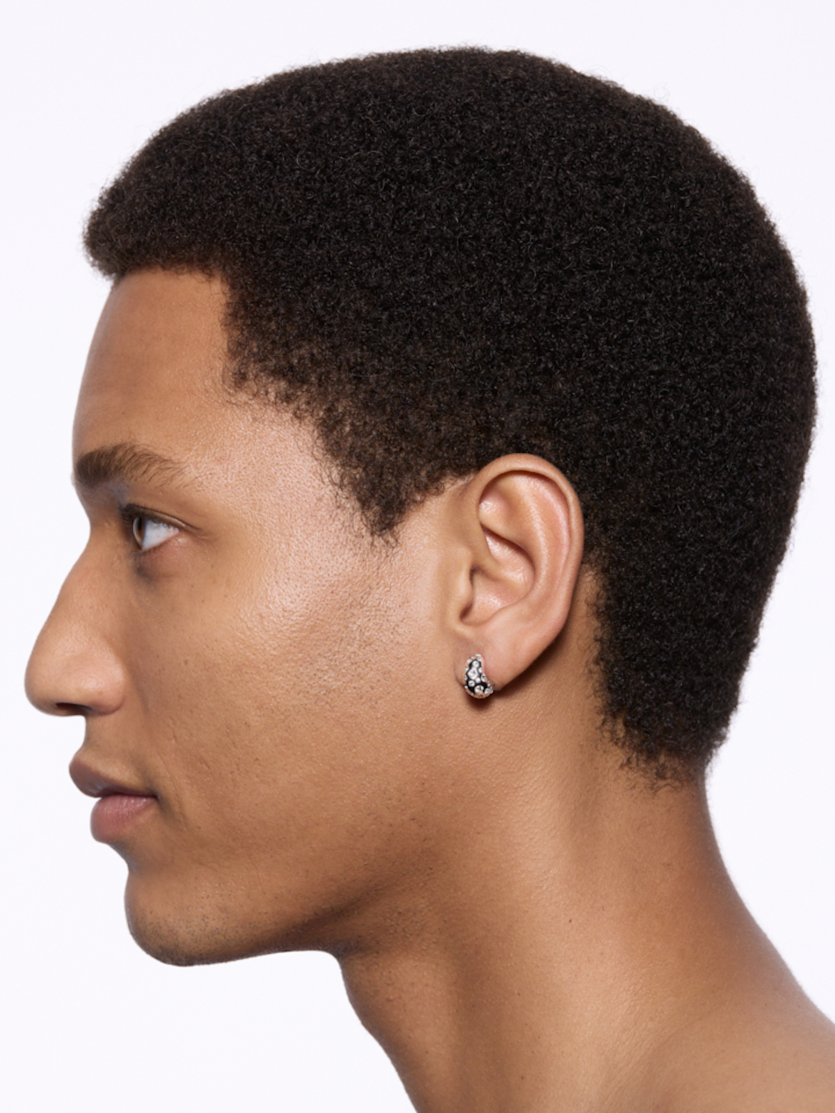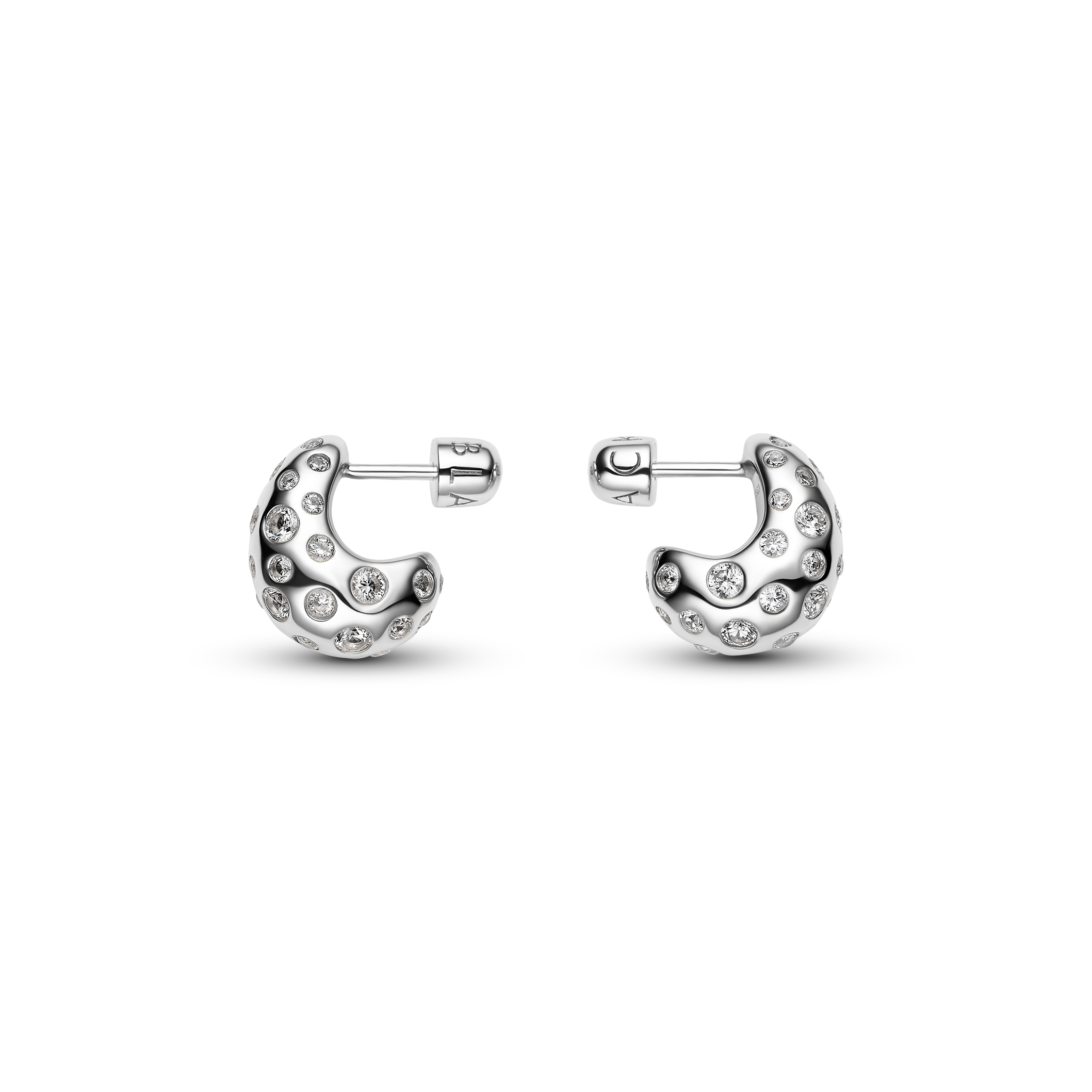 Oval huggie med poleret finish og håndsatte hvide zirconia-sten