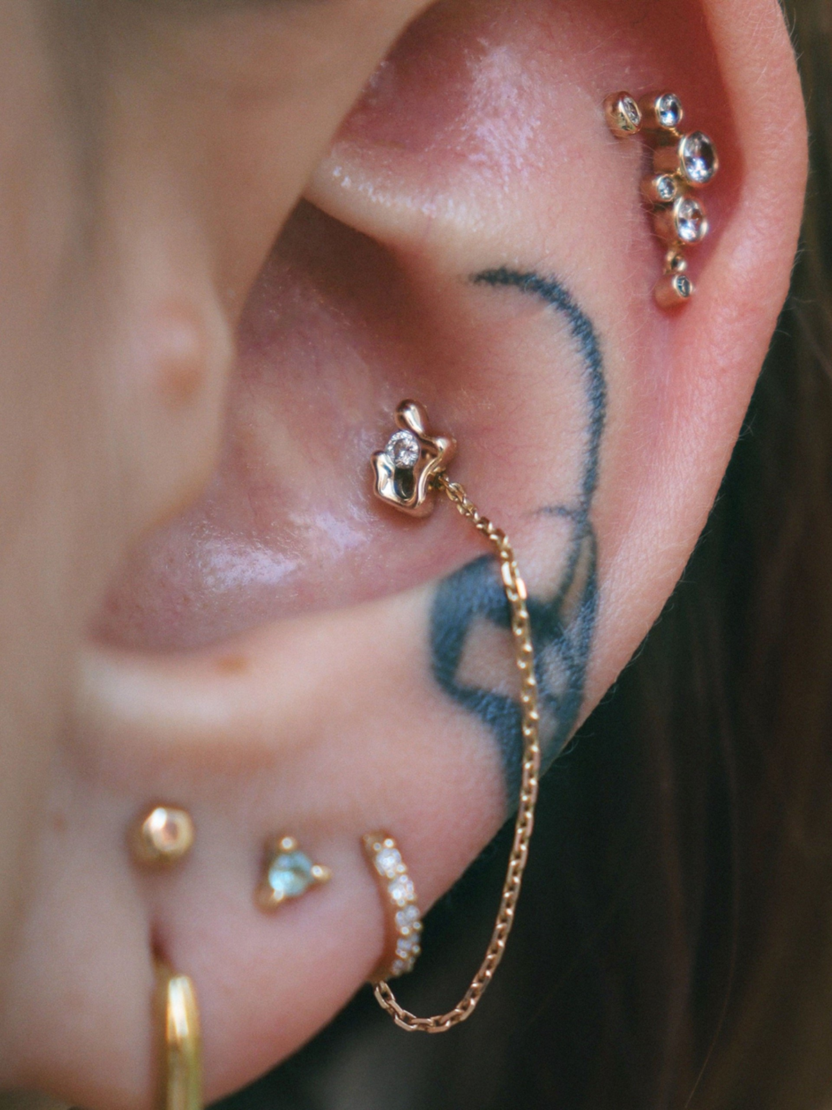 Visit one of our piercing studios to get pierced with this design Suitable for most ear piercing placements