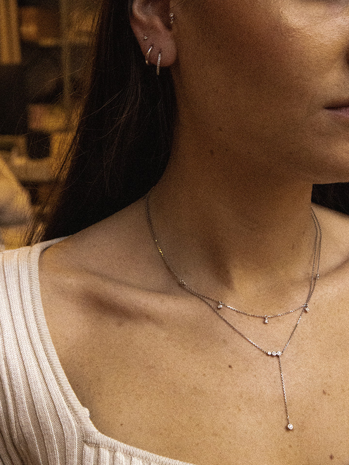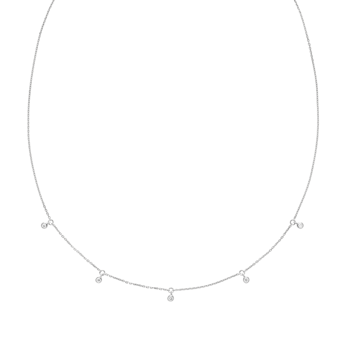 Moreno-kjedet er et fint, men likevel iøynefallende smykke med fem individuelt innsatte lab-dyrkede diamanter, laget av 14 kt. IMPACT gull.