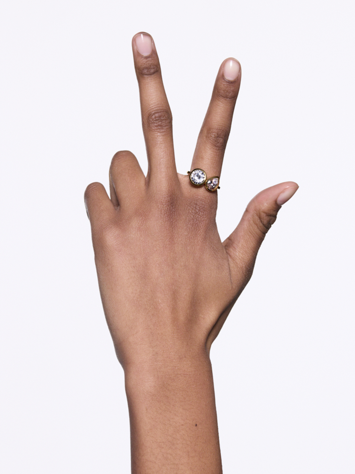 Klassisk tolkning av Moi et Toi-ringdesign med rundt og pæreformet hvit zirkonia