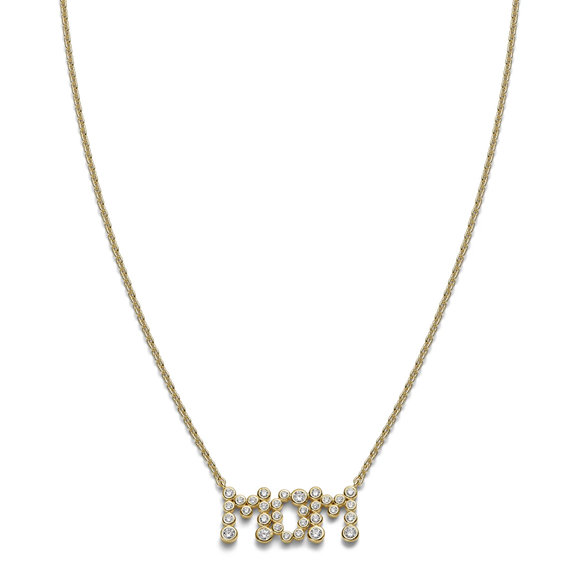 • A delicate sterling silver MOM necklace set with cubic zirconia stones.