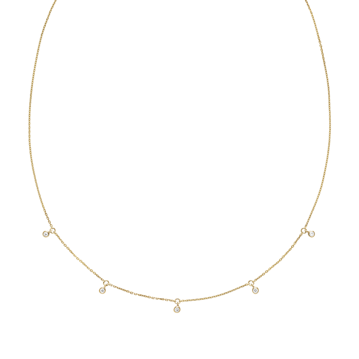 The Moreno Necklace is a delicate, yet stunning piece, featuring 5, individually set lab-grown diamonds, made from 14k IMPACT gold. It is perfect for layering with other necklaces or simply worn on its own. For a full look, combine it with the Moreno Bracelet and the Mini Me piercing jewellery.