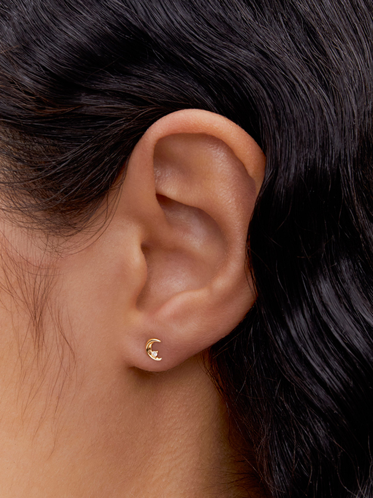 Skilfully crafted in nickel free, hypoallergenic 14K gold Stud earring in crescent moon shape with lab-grown diamond