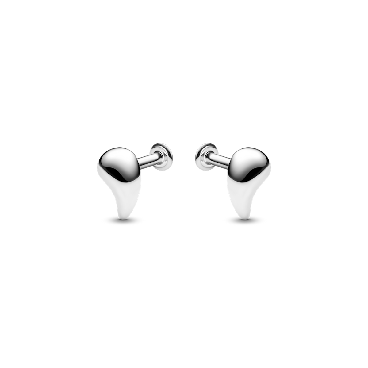 A curved droplet stud earring designed to accentuate the curve of the ear