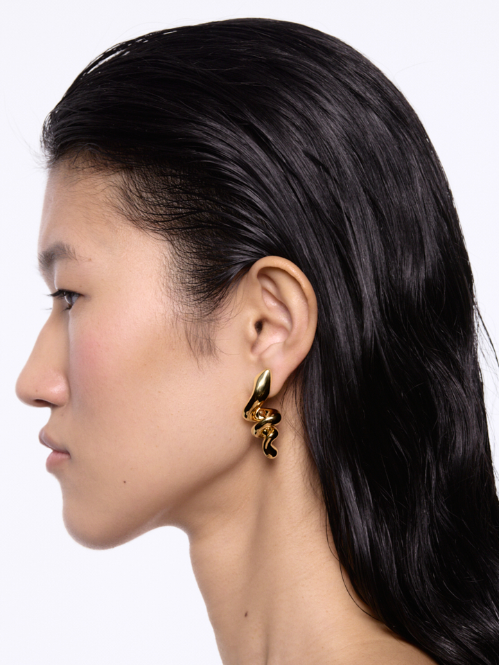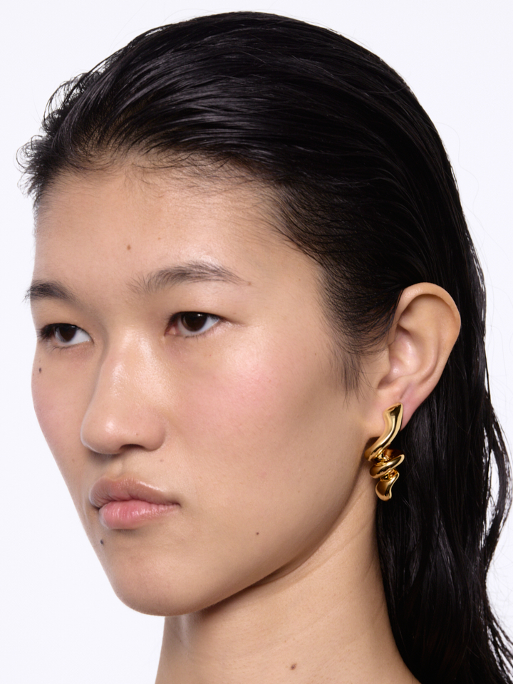 A futuristic elegant earring that frames the face