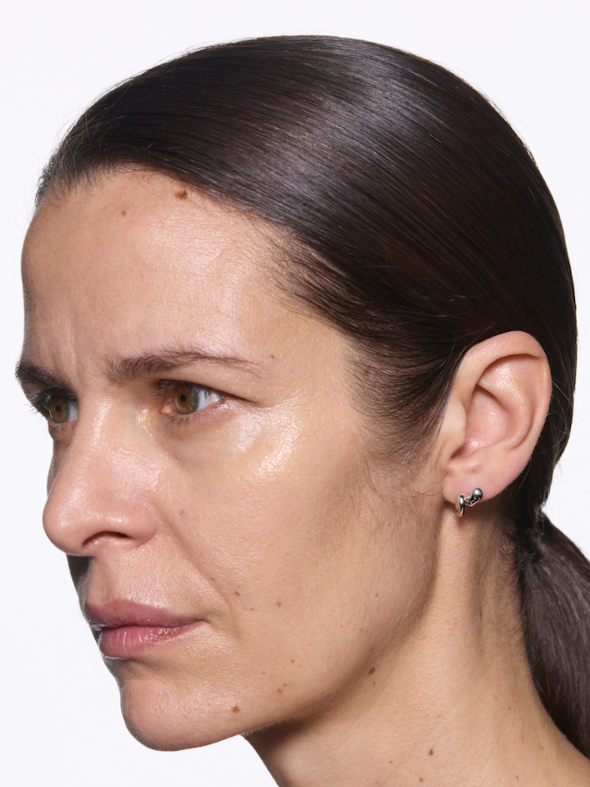 A futuristic elegant stud earring that curls up the ear