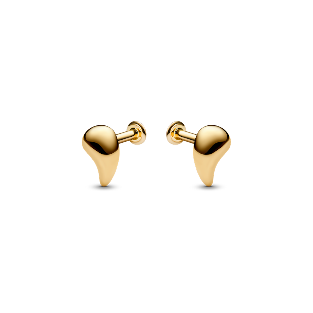 A curved droplet stud earring designed to accentuate the curve of the ear