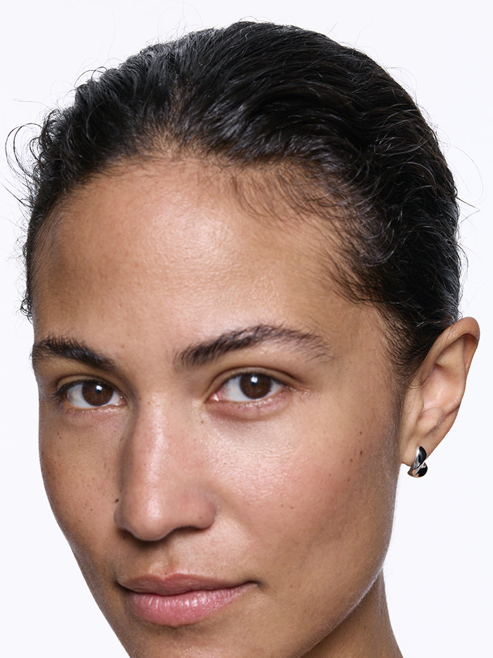 Designed to sit close to the lobe, the earring creates a snug, fluid silhouette that follows the natural shape of the ear.